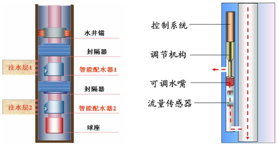 智能分注系统一趟管柱可完成配水功能,并能从地面遥控改变井下各层的配注量,提高调配效率和实现精细分层注水,不但满足常规直井分层调配的要求,而且可解决深井、斜井、水平井的分层注水调配难题。